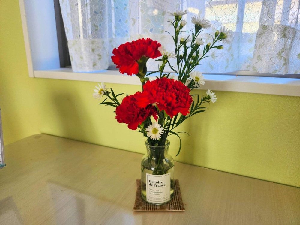 今はただ花瓶にお花を入れるだけですが、これから花の長さを整えたり好きな花を選んだりして楽しんでいけたらなと思っています